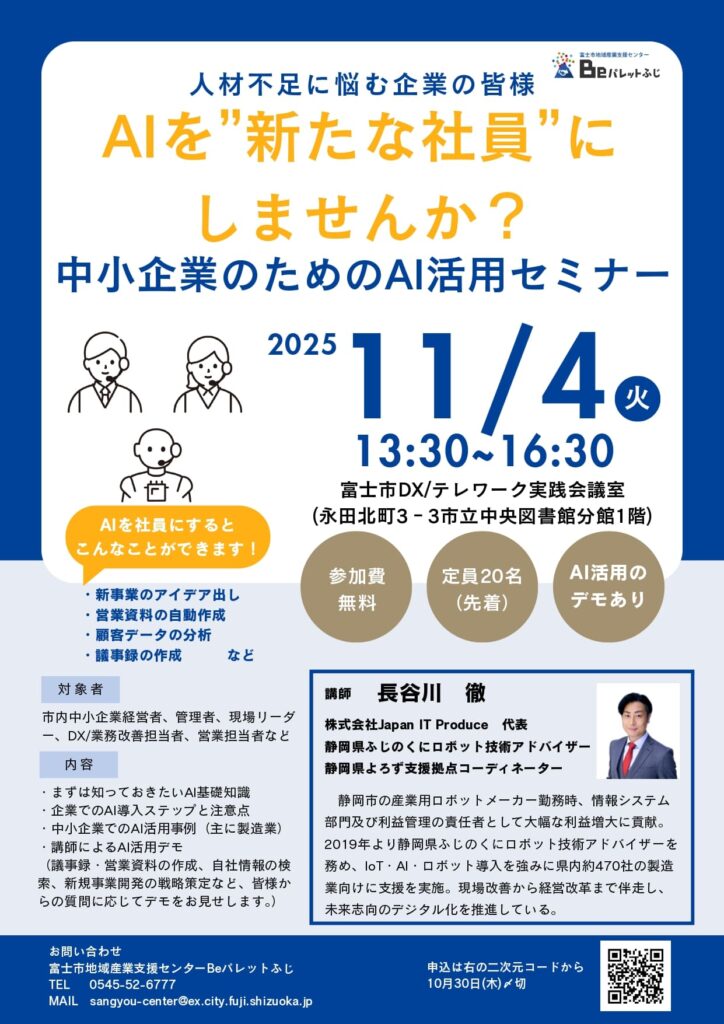 【11/4(火)】AIを“新たな社員”にしませんか?中小企業のためのAI活用セミナー参加者募集!