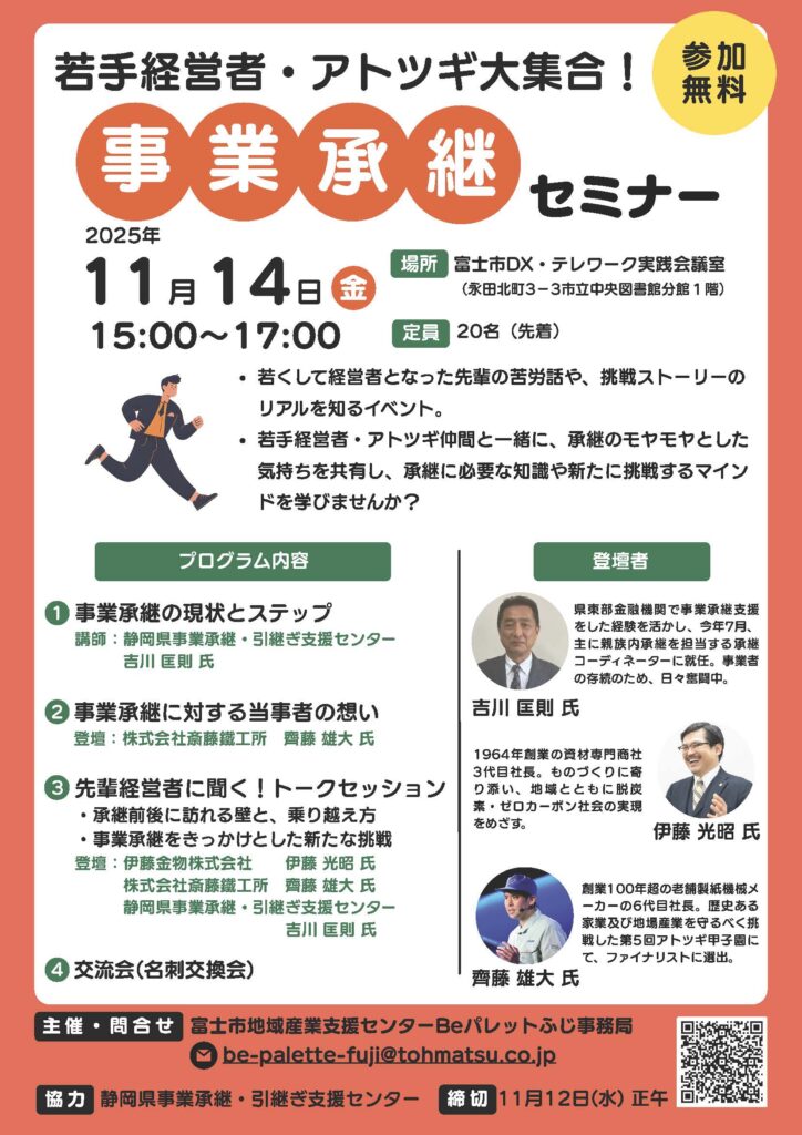 【11/14(金)】若手経営者・アトツギ大集合!事業承継セミナー参加者募集